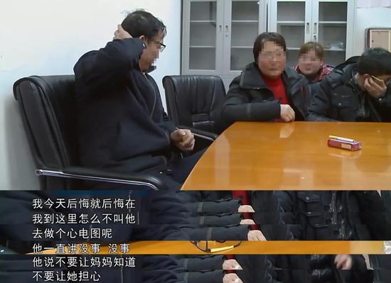 他舅舅使劲拍了一下自己后脑:“我后悔没有叫他做一个心电图,(他)一直讲没事没事,不想让妈妈担心。。。”言语充满了后悔和懊恼。