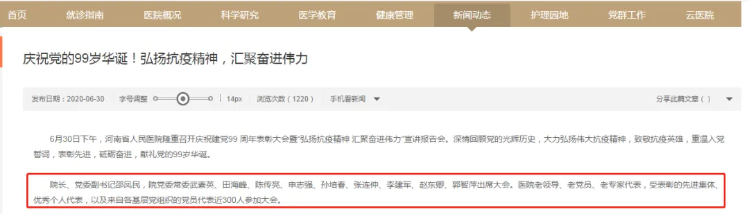 读书分享会由河南省卫健委直属单位工会、河南省人民医院工会首次联合举办,河南省脑血管病医院承办。登台分享的朗诵者,大多来自抗疫一线。有重症救治团队的专家、有援鄂医疗队员、有机场海关外防输入工作队员,还有发热门诊、隔离病房等一线岗位的白衣战士。第二场活动是河南省人民医院召开的庆祝建党99周年表彰大会暨“弘扬抗疫精神 汇聚奋进伟力”宣讲报告会。
